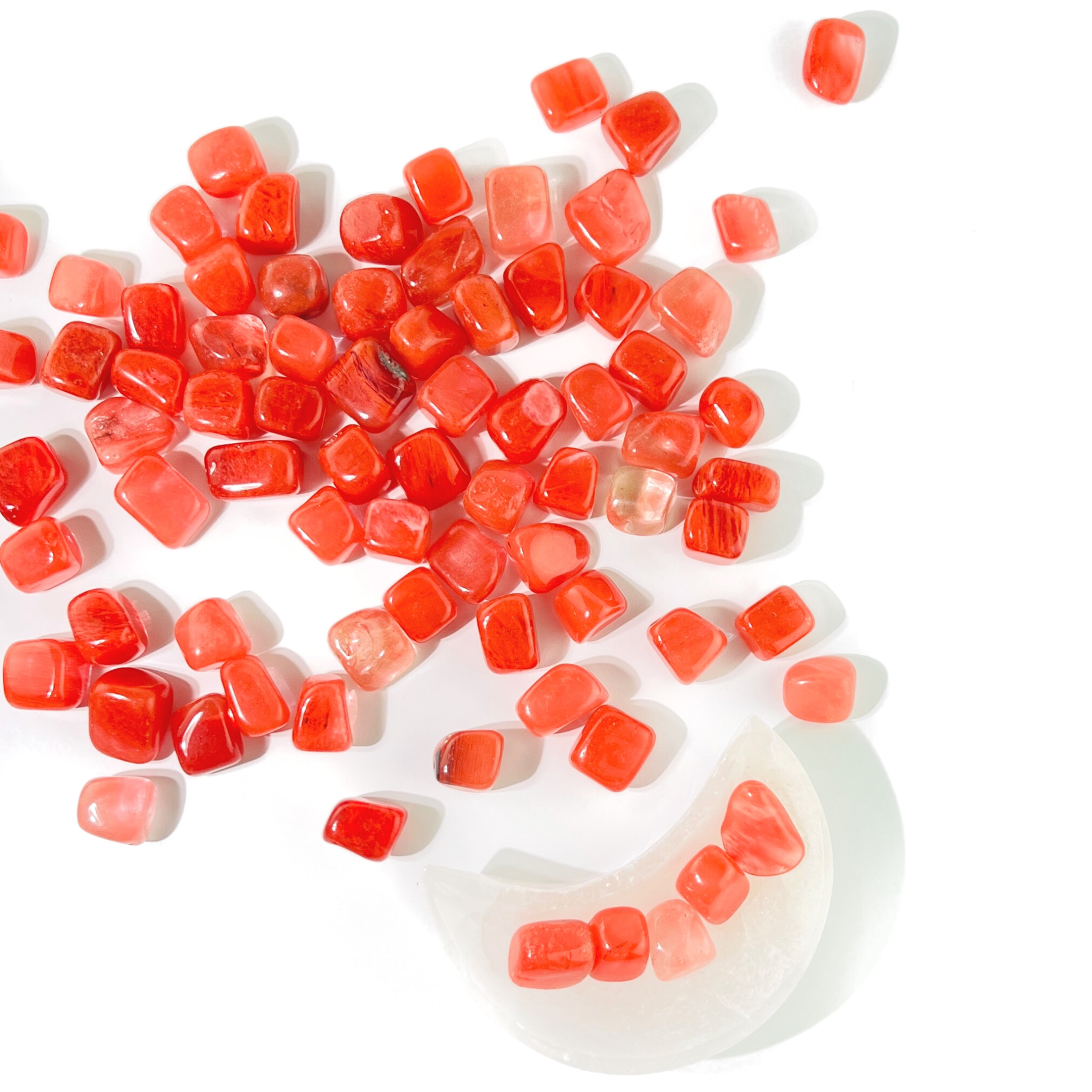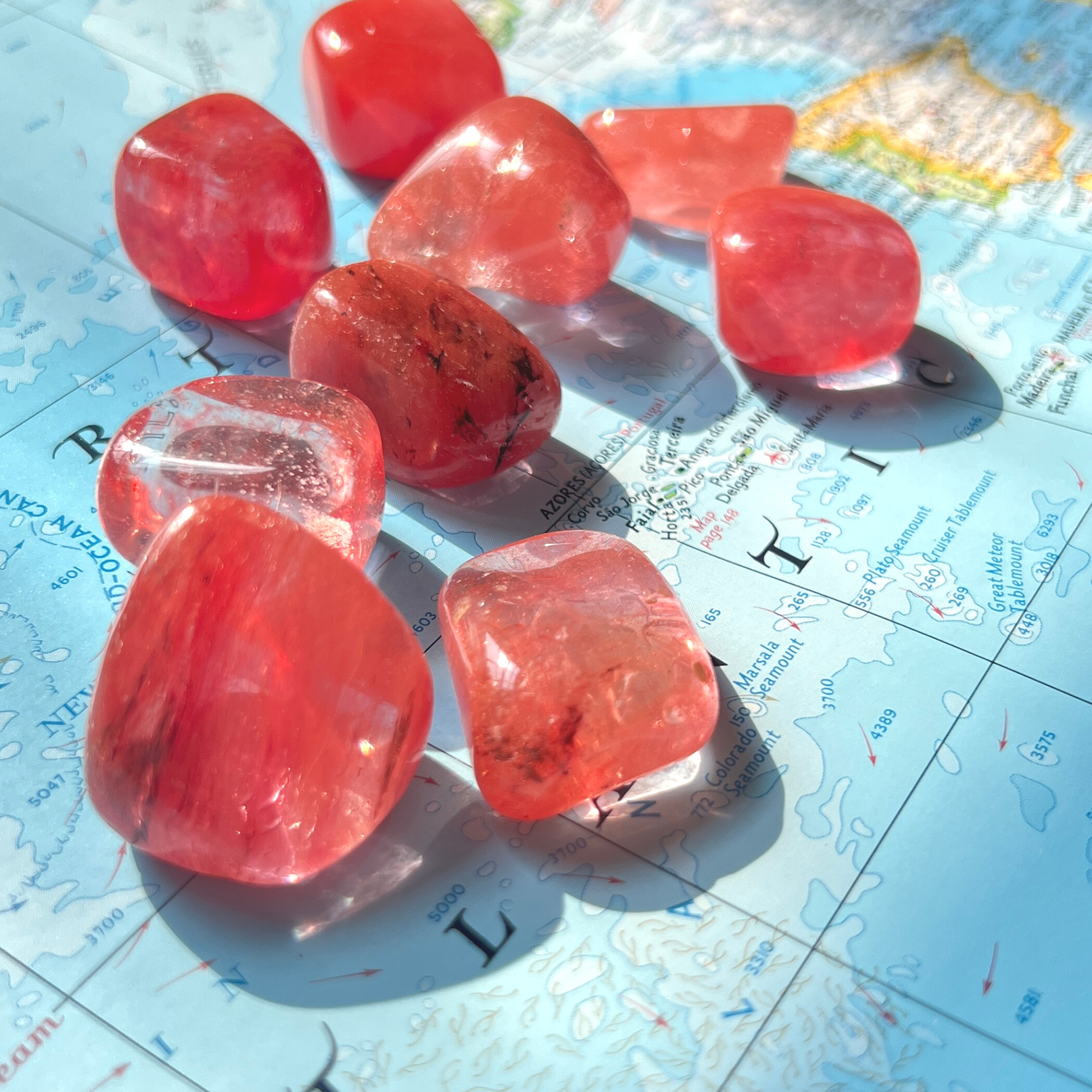 Heal and harmonize your heart center with the beautiful energy of Tumbled Cherry Quartz. This gemstone is a powerful ally for soothing deep emotional wounds, helping to diffuse intense feelings like fear, anger, jealousy, and tension.
